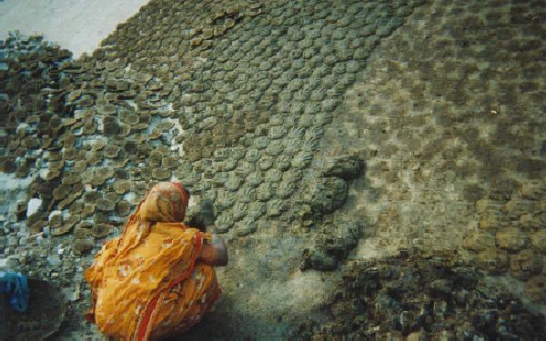 右下が牛糞の原形です。この人はきっとこんなにいっぱい燃料を毎日作っているのです。