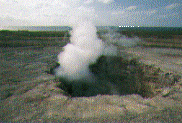 昭和46年頃から直径10M、深さ数Mの陥没が起こり、当時は噴気程度であったが、昭和51年 頃から熱泥水が噴出、昭和53年には爆発を伴い激しく活動した。 熱泥水の色が鮮やかな「うぐいす色」をしていたことから、この名が付けられた。