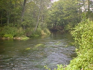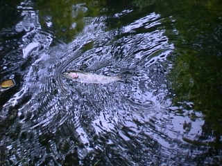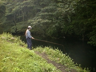 この桂川は神奈川県中央部を流れる相模川の上流になります。忍野地区では、山中湖か らの流れ出した川と水車小屋と富士山で有名な忍野八海のわき水を集めた川が合流して います。関東からも近いので、釣り人も多く魚はかなりスレています。ほとんどの場合 フライには見向きもされません。よくて、近寄ってきてすぐUターンでしょう。ただ、 魚の量もすこぶる多いため、策を練れば、何らかの成果を得ることは可能です・・・・ そのうち、「イヤでも入れ食い」フライを巻き鯛と思って鱒! いいのかなあ?(^_^;;