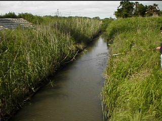 新利根川はヘラとバスで有名だが、堤防の外側の水路も意外に見落とせない。周辺の 田圃のための水が動いているので、魚も元気。バスやギルがいないのもうれしい。