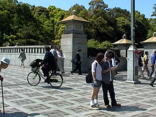 神宮橋の参拝道を自転車が行く(原宿駅) |