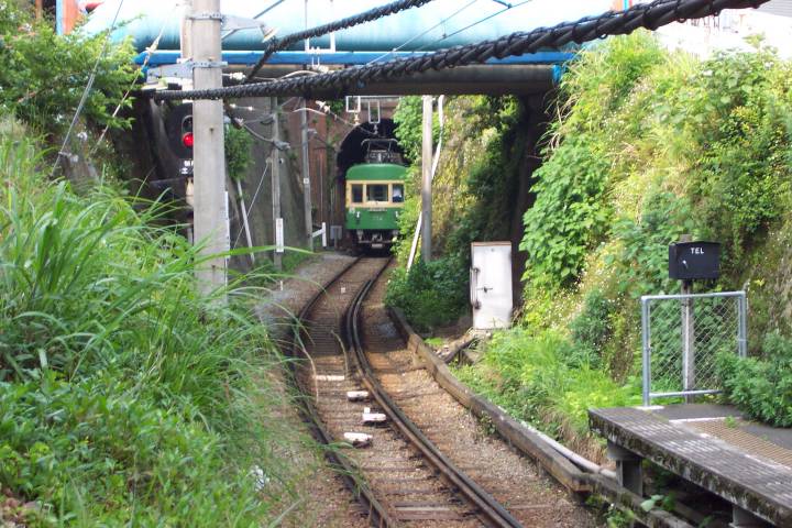 極楽寺〜長谷間、沿線唯一の隧道を抜ける304/354。レンガの褐色、野草の緑色。のんびりとした風景には、やはり大人しい雰囲気の300型が一番似合うと思う。