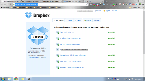 Dropboxのページにアクセスしちゃうといきなり256MBゲットできないので気をつけて。