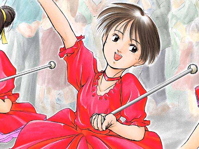 例えば、貴方がとある高校の文化祭に足を運んだとします。そこで女子校生達のバトンダンス(…と言うの)が繰り広がられているとしましょう。彼女達の伸び伸びとした演技に感動し、思わず一枚の絵にしようと考えるのも必然だとします。(とりあえず、その文化祭での発表会が三年生にとって最後の舞台で、涙を流しながらの演技になってしまうとか、下級生達も涙を流しながら花束を渡しにいく、とかいう場面はさておく。)