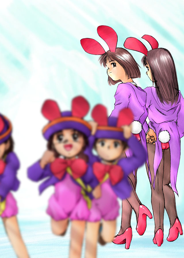 こういう光景もあってもいいかな〜と描いた絵です。この一枚、けっこうこっていまして、照明効果を出すために一枚の絵を3枚のレイヤーに分割、各々のレイヤーに対して別々に照明効果を与えました。普段だったらいくつレイヤーを用意するか考え、下書きもその枚数用意するのですが、この場合に限っては後からレイヤーを複数使うことにより効果が出るとわかり、あわてて対処した次第です。しかしこれはうまくいったと自負しています。
