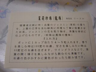 つけてくれた説明書。熱いお湯で香りを楽しむのが好み。