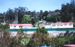 コダイカナルのスワミがいるところ ここの庭?でダルシャンを受ける。2、300 人位?で埋まってしまうほどの広さです。 コダイカナルは、バンガロールの南約400K mに位置しますが、標高があるせいか過ごしやすい。 バンガロールから車で約10時間ほどかかりました。 |
