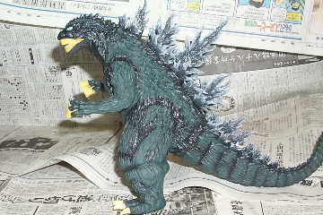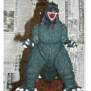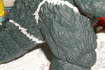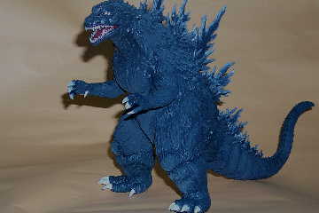 | 出来上がり、と思ったらちょっと 塗りムラが出来ちゃいましたね。 後日手直しするという事にして とりあえずこんな感じです。 私の様に大したスキルが無くても ガシガシ改造出来るのが ソフビキットの魅力かも知れません。 皆さんもお部屋に1匹いかがですか? まあ私の家みたいに怪獣だらけに なっちゃうとちょっとアレですが。 |