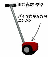 当時もローラースケートが流行っておりましたが この連中はただのローラースケートではなく、 何というのか妙なエンジン付きの道具(図参照)を使って バリバリと猛スピードでアリーナ内を爆走するという すさまじいモノでした。
