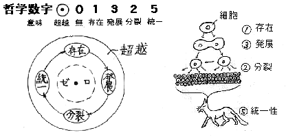 そこで《水滴形から演繹的に展開するメカニズム》は《宇宙創造の順序と構造》を捉えたもので、これが《哲学数字と宇宙図》である。