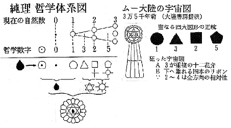 然し、その十年後に発行された《失われたムー大陸・大陸書房》で《3万5千年前の最古のムーの宇宙図》を見て「友、遠方より来る」というが、図形で宇宙哲学を解く私の知的同族は『一万二千年前に一夜で海底に沈没した幻のムー大陸』からやってきたのだ。