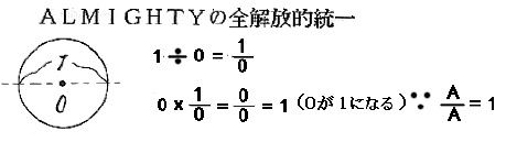 また《中心点のある円の図形》は《0と1を統一する超数理》だし《点と円の統合図》でもあるから、これは《数学と幾何学の大統一原理》だったのである。