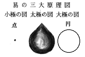 【(1)点が小極の図、(2)円が大極の図、(3)水滴形が太極の図】