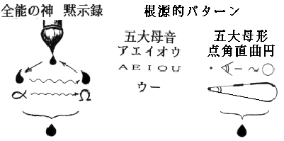 とすれば、ギリシア文字も「αとΩを水滴形で示す」から、世界共通の図形思考として「宇宙の主の印・全能の神」は言葉は違っても意味は同じではないか。