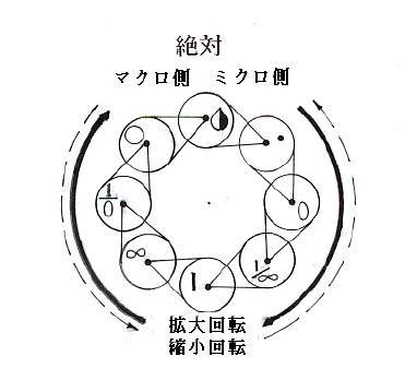 これは『マクロ(極大)側から絶対界へ突入して反対側のミクロ(極微)側へ飛び出す』