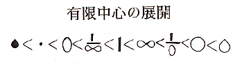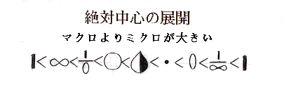 全てを超絶する絶対が《極大より大きく極微より小さい》のは当然」だが《コレガ曲者》で《絶対界を中間として大小関係が逆転する》キテレツな事になる。