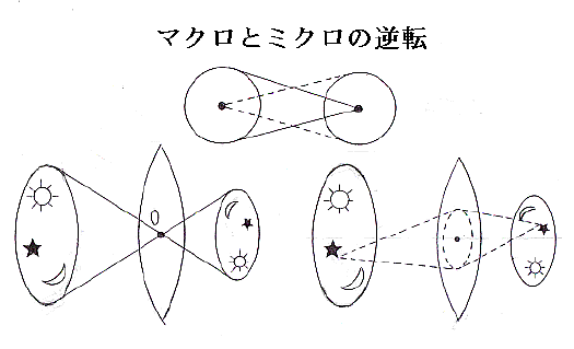 これは《ゼロ点が宇宙より大きい》から、小部屋の窓にも月が見え、小さな昆虫の瞳孔が大自然を見るのである。