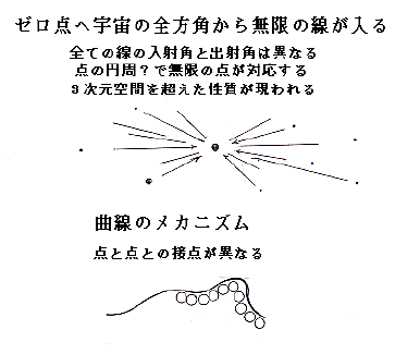 4.一つの《点》へ宇宙の全方角から無数の線が引けるのは《ゼロ点の円周?》に無限の異なる接点があるからで、その《点の一回転》は無限の距離に達する巨大な車輪になる。