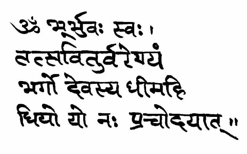 OM BHUR BHUVA SVAHA TAT SAVITUR VARENYAM BHARGO DEVASYA DHEEMAHI DHIYO YUNAH PRACHODAYAT