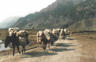 ロバの商隊?だ。荷はヤクの毛のようだ。