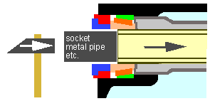 入り口を超えたら、奥まで押し込む為のカラ−が必要になります.今回はKTCの36mmソケットを使いました.筒の奥の段まで入って止まります.