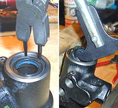 2. バルブが抜けたら、ハウジングの上側にあるスナップリングとオイルシールを外します。