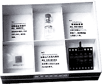 『廃墟博物標本セット』 ボックス120x150x40mm 帝国ヘルスセンターのローマ風呂壁片、和歌山八光苑内の気体、摩耶観光ホテルのポジフィルム。(大沼ショージ限定30箱制作) | 『廃墟の博物學』カタログ
