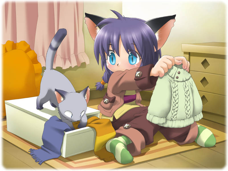 本格的な冬に向け冬物を出しているネコミミちゃんです。