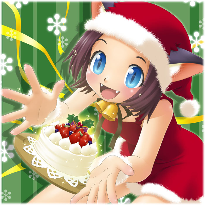 サンタねこみみちゃんがケーキをプレゼント〜!という感じで