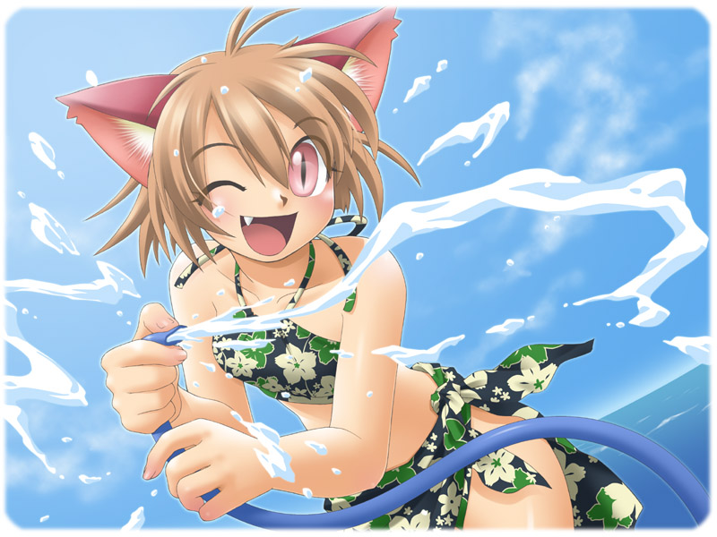 「夏らしい感じで」と思い、水着、海辺、水しぶき…などなど