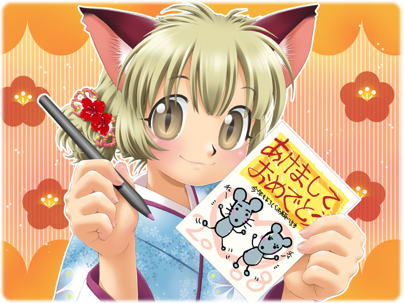 お正月ということで、晴れ着と年賀状です。