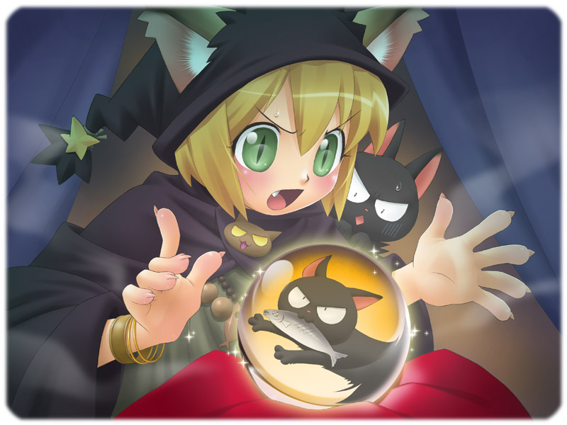 「オカズどろぼう」を占ったら猫だった…という絵です。