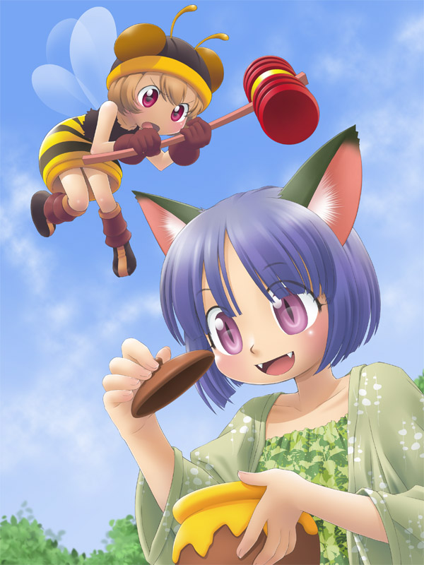 ぽかぽかと陽気のいい季節なので、原っぱで昆虫と戯れる感じで描きました。
