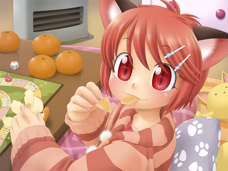 お正月は晴れ着を描くことが多いのですが、変化をつけて「こたつとみかん」に