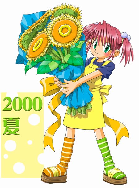 元気に夏!というような感じで、ひまわりを抱えた絵にしました。