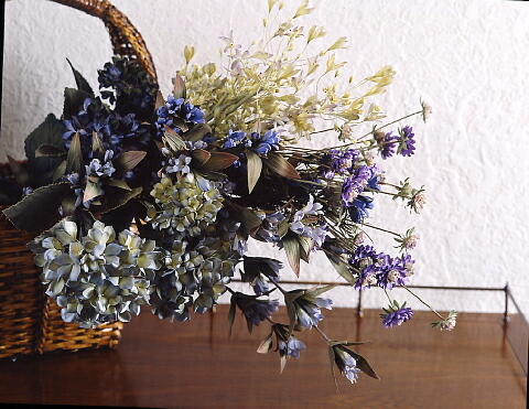 あじさい、リンドウ、マツムシソウ、ミニアガパンサスを使いました。