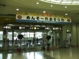 | 那覇空港(沖縄空港)は軍民共用空港です。それも戦闘機が広い軍用エリアにずらっと並んでいていかにも基地の島という異様な雰囲気。対照的に民間機は狭い駐機場にひしめき合っています。スポット数は少なくないのですが誘導路からの入り口が一つしかないのでどの便も出入りしづらそうです。沖縄便に遅延が出やすい理由は軍用機よりもこれのせいなのでは。吹き抜けのターミナルからガラス越しに滑走路を見ることもできますが、展望デッキも一応あります。ただ、入り口がすごく分かりづらい(3F北端)です。 |