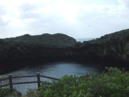 下地島の数少ない遊び場として何度か登場する「通り池」。実際にも底で海と繋がっているダイビングスポットという事でガイドブックにも載っています。滑走路とダウンウィンドのちょうど真ん中に位置していて訓練機が周りを飛びまわっています。写真奥の海上に小さく写ってるのが見えますかね?
