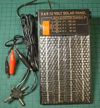 今回使ったソーラーパネル(中国製) 設定:3V/200mA,6V/100mA,9V/50mA,12V/50mA
