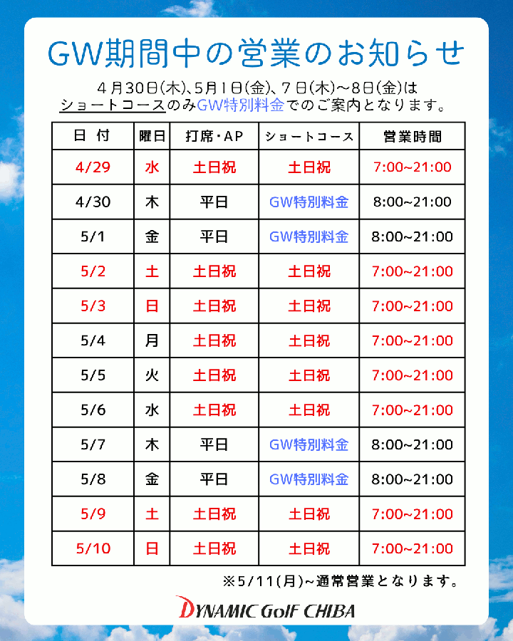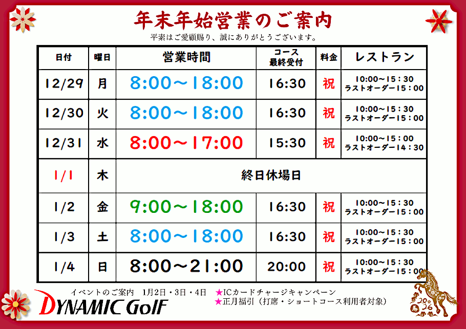 営業時間のご案内 |