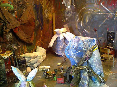 展示オープンのプレイベントで、皆によって塗ったくられたようですが、爆撃された中東のどこかというイメージです。