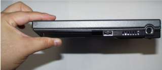 前位寄りから、HDDスロット、赤外線ポート、USBポート、排気口、そして液晶パネル側を切り欠いて