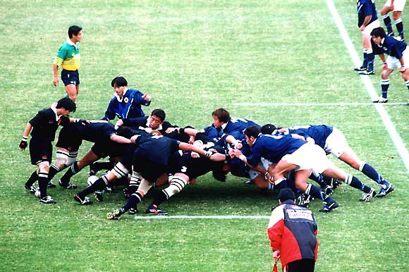 スクラムからボールを出そうとするリコーSH月田。