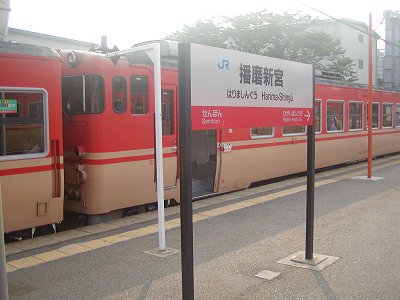 クハ115-1118。 進行方向右側(w)の座席に座り、山陽本線上り列車の車窓を楽しむ。 ちょうど今から乗る区間である。そのために 気合を入れて車窓の風景を見ておきたい。 車両は 夕方の列車で、反対方向が混んでいるがこちらは比較的空いている。 /snip 今回もこの駅は素通り。というか通過。 水島臨海鉄道のディーゼルカーが止まっていた。 徐々に車内は混んできて、座席がさらりと埋まった。 そして岡山。 時間も時間(午後6時過ぎ)だから、ホームには多くの人が列車を待っている。 ここ岡山では、スルー運転が行われていることが特筆できよう。 今乗っているのは、山陽本線の三原始発だが、岡山から赤穂線へ直通する。 中には、伯備線から赤穂線に直通する列車などもある。 さて、夕方ラッシュですっかり混んだ列車は、数駅山陽本線を上ってから 赤穂線に入る。単線区間である。 地図を見ると、海が近そうにみえるけれど、進行方向右側の車窓からは なかなか海は見えない。 そろそろ寝も寝もで、半ば意識が飛びつつある。駅に止まる毎に乗客は減っていく。 海が近づき、日生(ひなせ)の駅に着く。 昔、姫路からここまで赤穂線に乗っており、ここから小豆島に渡った。 渡った後は、そのまま高松に出たため、日生以西の区間が未乗車であった。 そのため、この時点で赤穂線の完乗となった。 そろそろ夕刻で、闇つぶしになりつつあるところ。 ガラガラとなった列車は播州赤穂に着く。この列車の終点である。 この駅始発の「新快速 長浜行き」に連絡する。 ここは播州だから、播磨の国=兵庫県、で長浜は滋賀県。 これもまた長距離を走りますなぁ。 クモハ223-3030。3000番台って乗るの初めてかもしれない。 転換式クロスの座席が空いてなかった(相席するほどの距離でもないし)ので、 先頭車でかぶりつく。といってもほとんど闇。 相生から山陽本線に再び入り、姫路に着いた。今日の目的地はここである。 姫路駅のコンビニで夜食を仕入れてから、宿に向かう。 今日のホテルは、駅南にある「ホテル日航姫路」。 ちょっと迷ってしまったけれど、駅前ロータリーのすぐ鼻先にあった。 というか一流ホテルで少々緊張する。 部屋は南側で、姫路の駅南って何があるのか… 何もないよな。 07/21(木) 今日も偉大なるローカル線に乗るが、本数が極めて少ない区間がある。 そのためには、姫路を7時発か12時発の列車で発たなければならない。 12時発の場合、ここ姫路で半日の時間があることになる。 ちょうど姫路城を見ていない(城の前までは行った)ので、それを見る時間がある。 ただし、後半で特急列車を利用する必要があり、また今日の宿に着くのが 23時となってしまう。 7時発の場合、ここで姫路城を見る時間がなくなる。 が、途中で特急に乗る必要もなく、その分の出費がなくてよい。 宿に着くのは18時。常識的な時間となる。 ただし、早起きするのが難点。 結局、朝4時に問題なく目が覚め、7時の列車に乗ることができた。 ホテルが駅南にあることから、駅北にある「姫路城」は全く見てないけれど、 山陰でなくて山陽だから、また来る機会もあるでしょう。 7時、正確には7:02発の列車、姫新線(きしんせん)の 2両編成のディーゼルカー、播磨新宮行きである【1】。 キハ47の2連で、そこそこ乗っている。途中駅で交換する列車は、朝の上りとあってけっこう混んでいる。 7:38に、この列車の終点播磨新宮に着いた。 乗り換え時間が10分あるけれど、駅の外に出る余裕はなく。 7:48発の佐用(さよ)行きに乗る【2】。 同じくキハ47の2連であるが、片方がキハ40(誤差でしかない)だから、 中間運転台が挟まっている