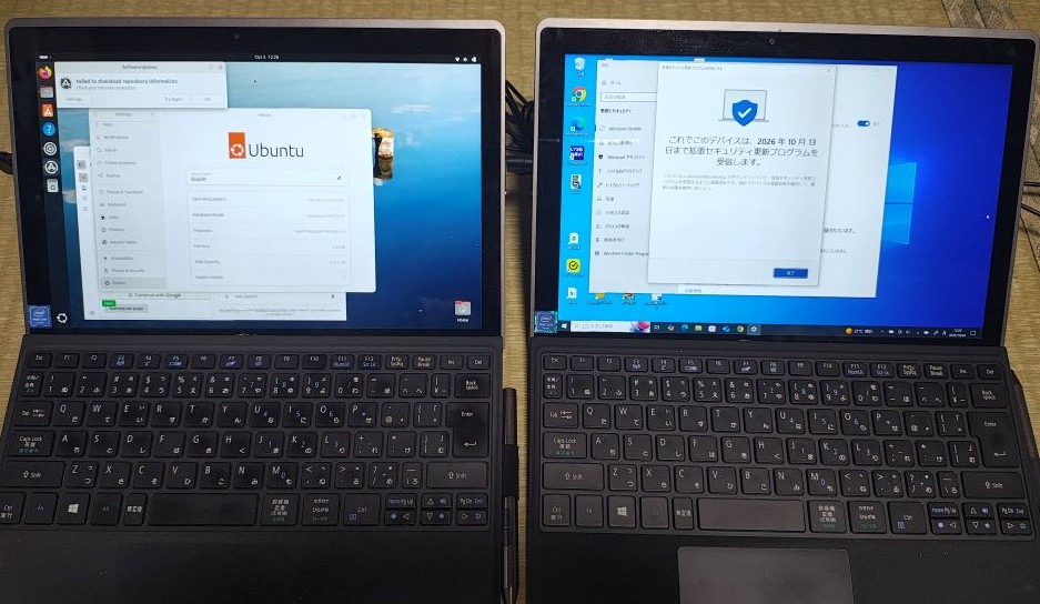PentiumのタブレットPC2台はWindows11の要件を満たさない。バッテリーもへたっているので廃却してもいいのですが、もったいないので生き延びさせます。1台はUbuntuにして、もう1台はESPでサポートを1年延長。