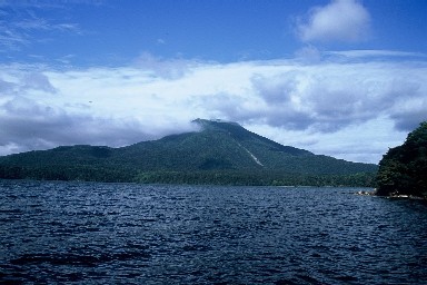 阿寒岳。なかなか豪快な山である。本州の山には無い雰囲気がありますね。横目で見ながら阿寒川へ。