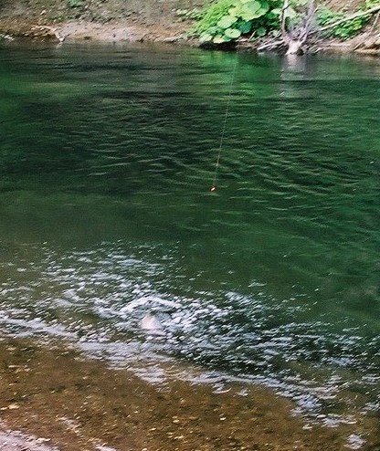 むむむむ!!!!ニンフを流してたら来た来た!お、重いな・・まさか大物?ドキドキドキドキ・・・・