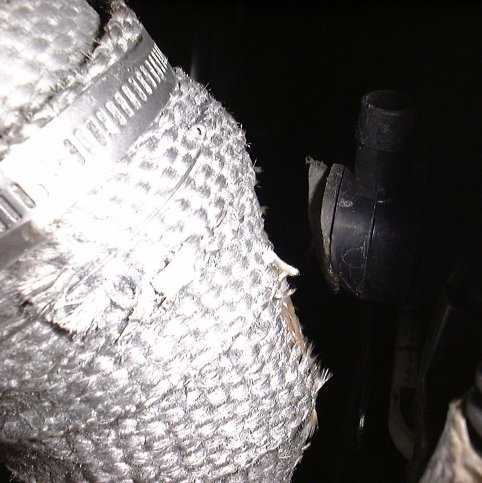 エンジンの揺れが激しいらしくドレンコックと干渉しその部分だけ耐熱布が破けた・・・