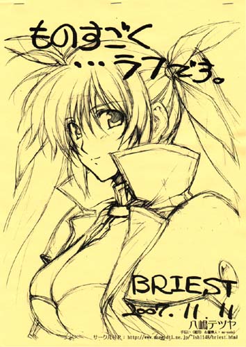★タイトル LMR/04 ★内 容 なのは StrikerS モノクロイラスト本(本文12P)です。 八嶋テツヤ的希望もはいっておりますのでその辺は ご了承下さい(笑) ロリ分が少ないので多少ロリ分カットもいれてみました(^^; ★値 段 1冊=300円 |