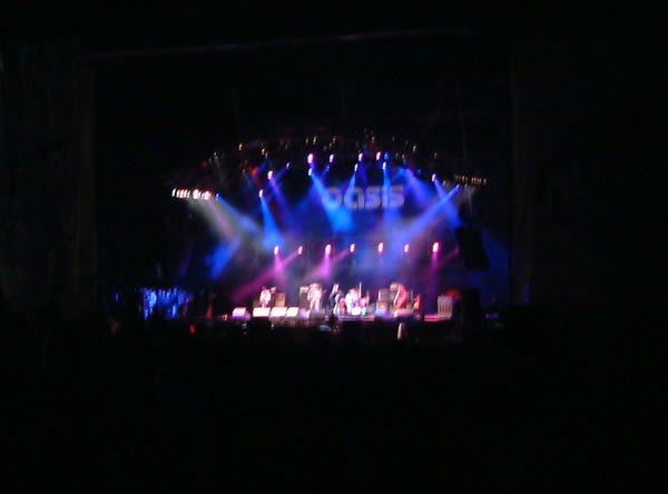 夜7時、いよいよマニック・ストリート・プリーチャーズが始まる。この日、はじめて前のほうで観た。見た目は小太りのオヤジさんという雰囲気だが、ヴォーカルはすごく上手い。そしてパワーがある。曲もかっこ良い。ベースの人は女装趣味があるようで、ワンピースにハイソックスのような格好。ドラムはふつうの人だったが、見た目的には不思議な感じの3人だった。黙々と演奏しつつも、終わったらいきなり楽器を壊しはじめたのが、なんだか取って付けたようなパフォーマンスで、オイオイという感じではあった。ライヴそのものはかなり良かったと思う。